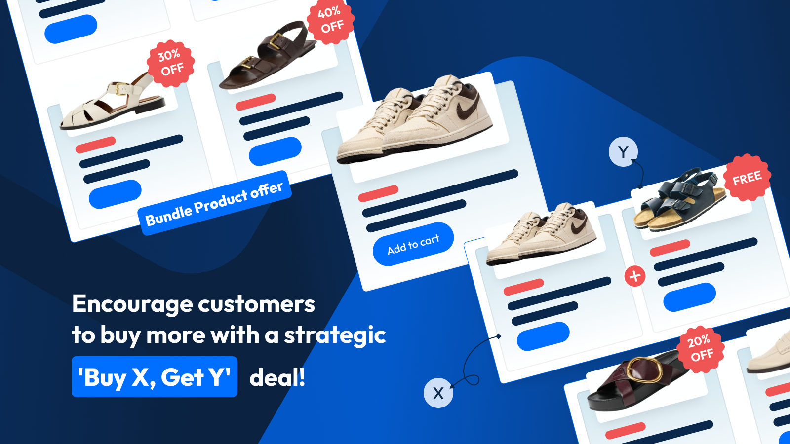 Create automatic "Buy X Get Y" (BXGY) offers, free shipping thresholds, and percentage or fixed-amount discounts to incentivize bundle purchases and significantly increase your average order value.