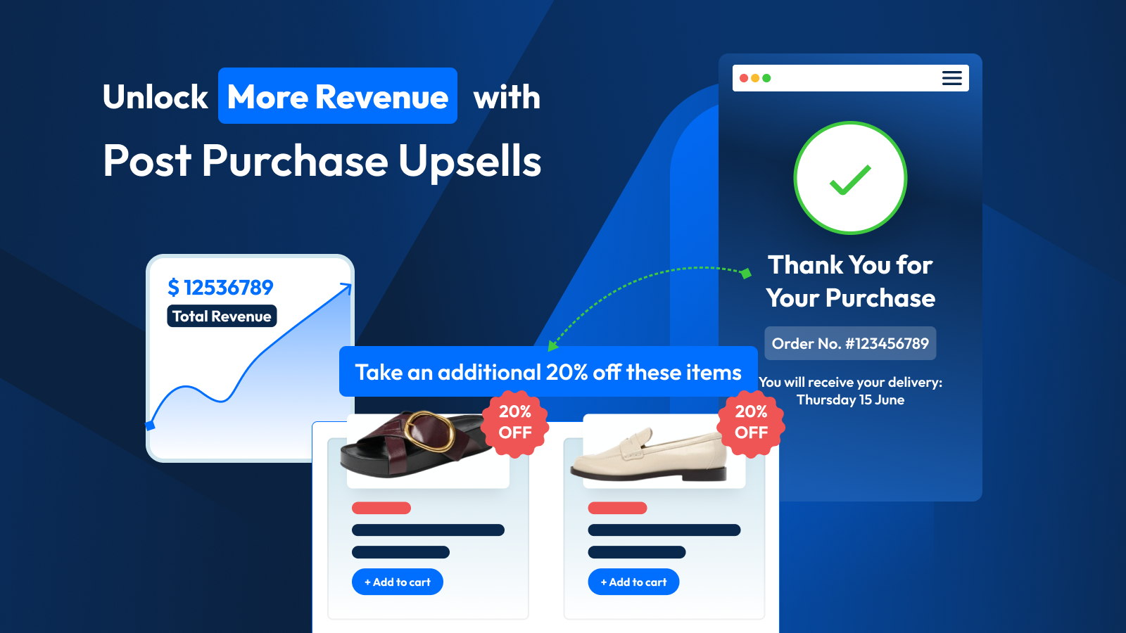 Maximize revenue by upselling and encouraging further purchases with targeted offers displayed immediately after checkout. Capitalize on buyer momentum for increased average order value.