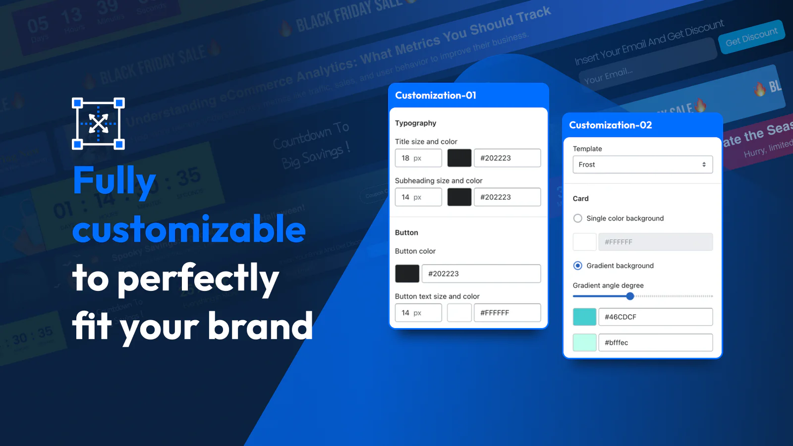 Design stunning popups that perfectly match your brand with our intuitive drag-and-drop editor. No coding required! Easily customize colors, fonts, and images to create a seamless brand experience.